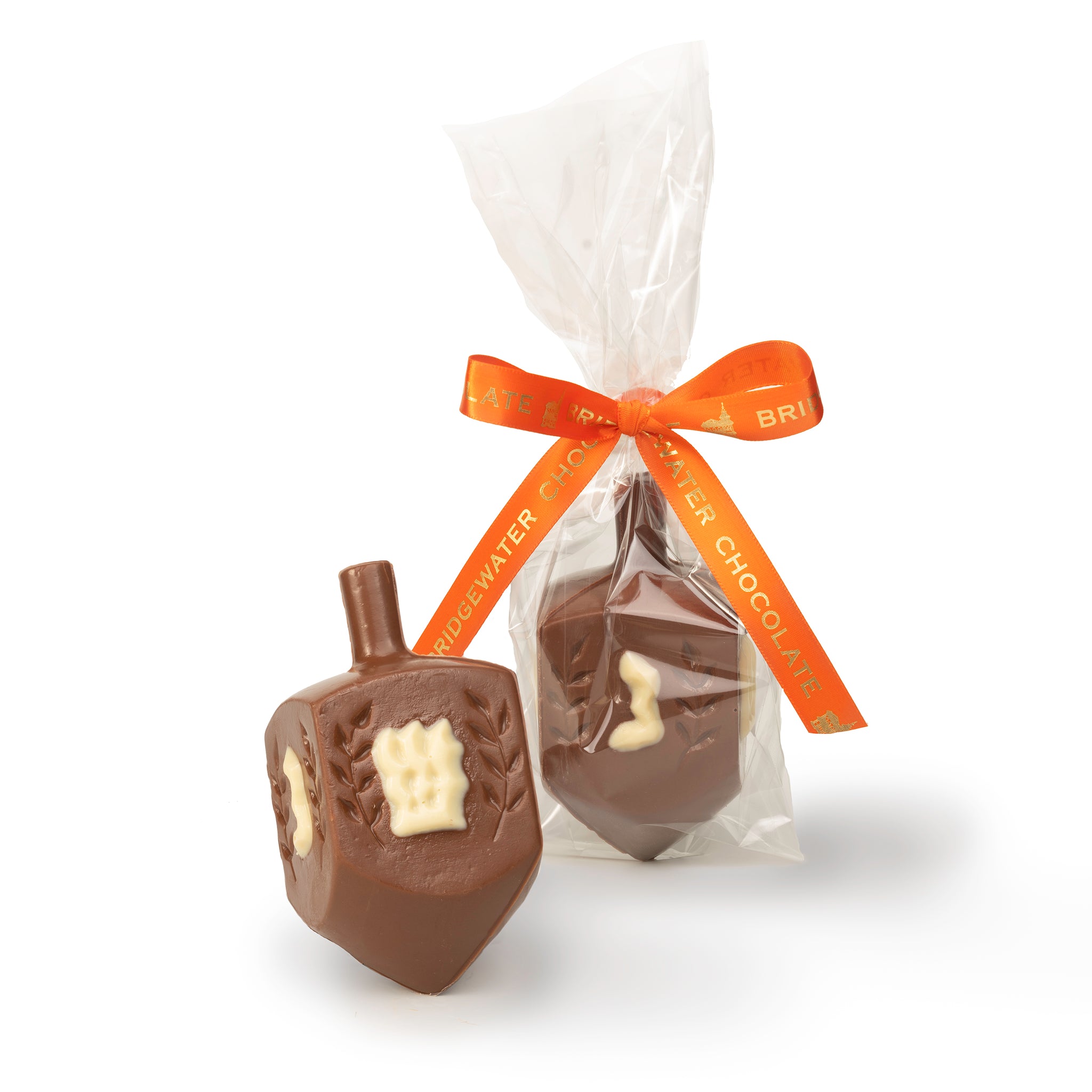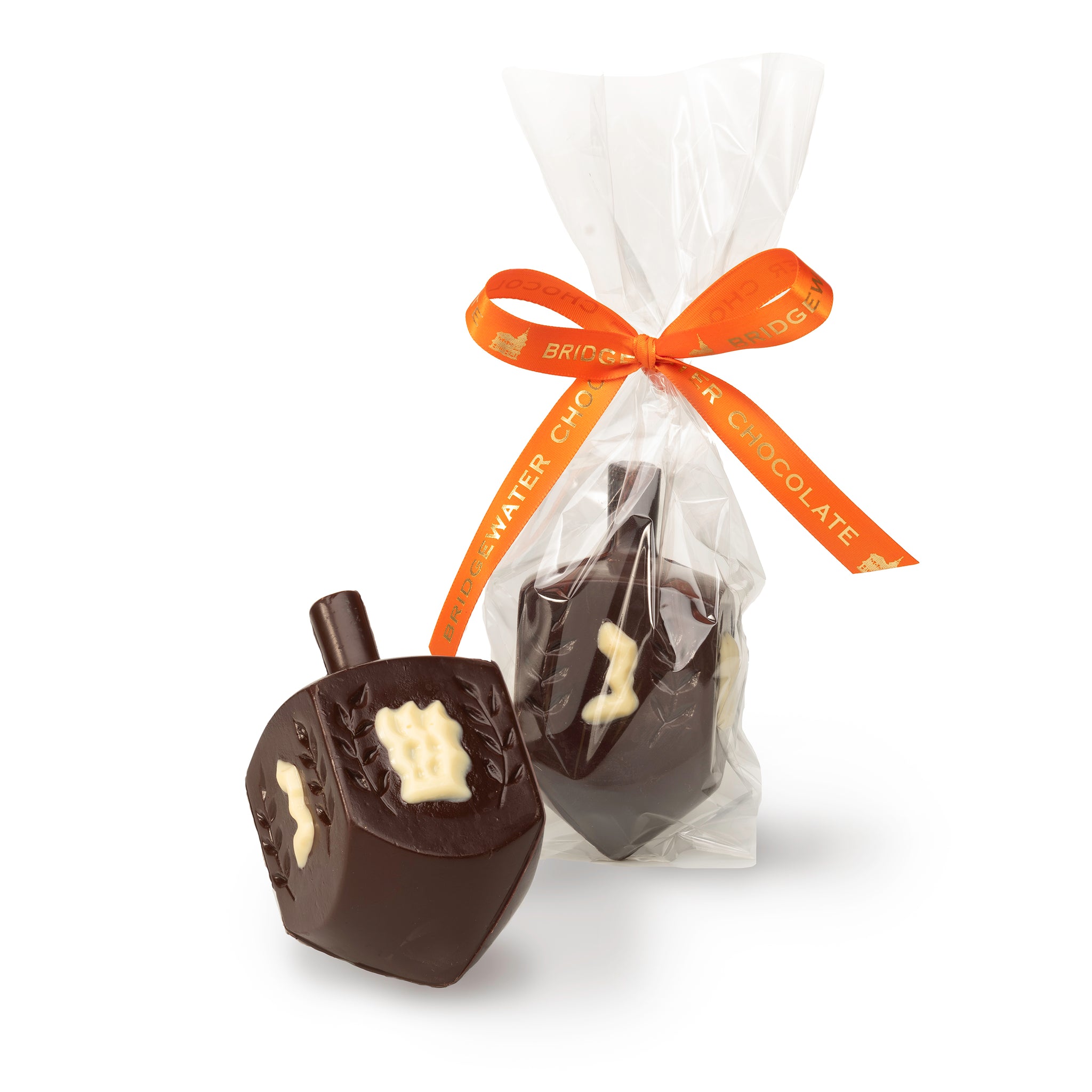 Product Details Packaged in a cello bag and tied with a Bridgewater Chocolate ribbon. Each dreidel is hand decorated; decorations may vary slightly.Dark: handmade with our finest blend of dark chocolate with white chocolate accents.Milk: handmade with our finest blend of milk chocolate with white chocolate accents.
