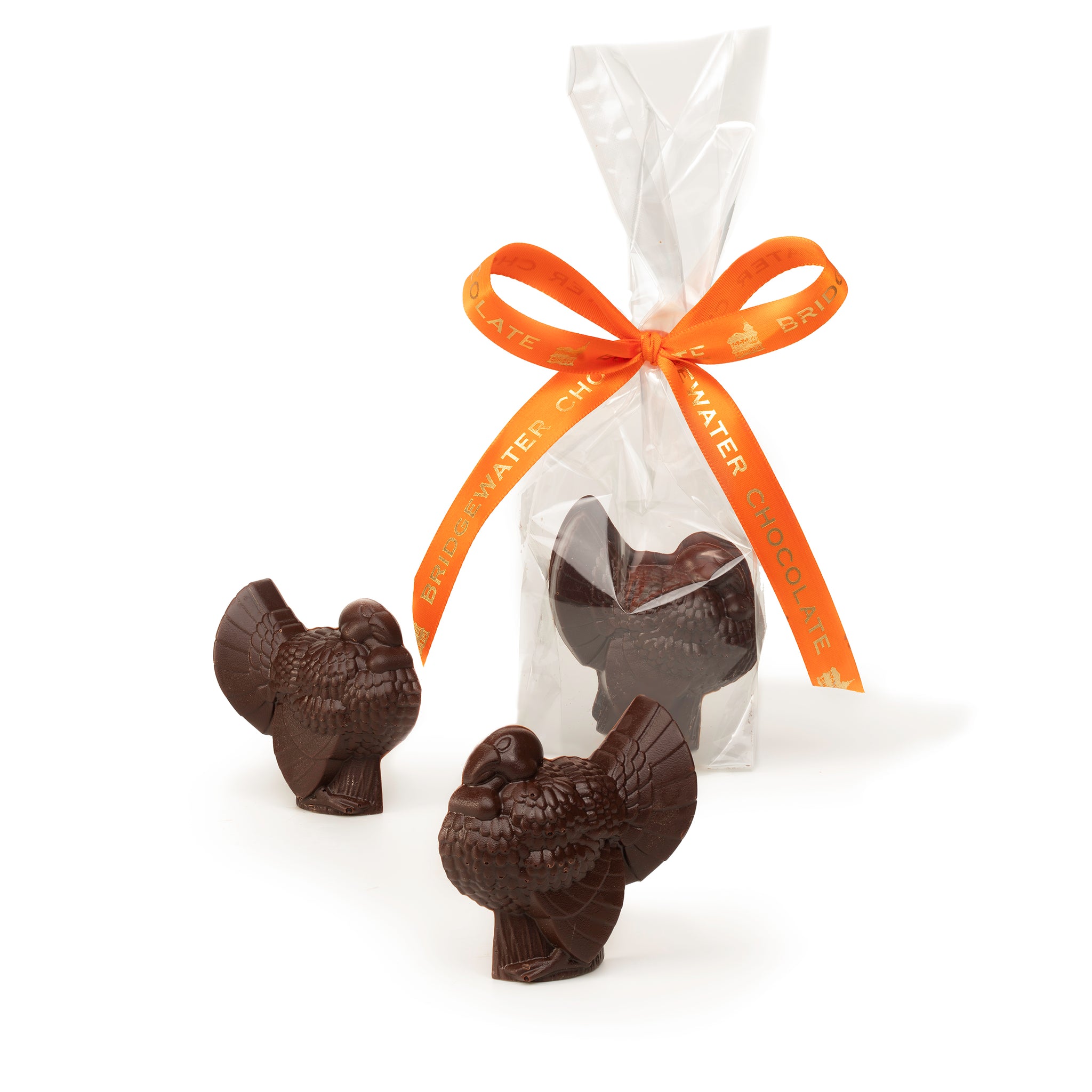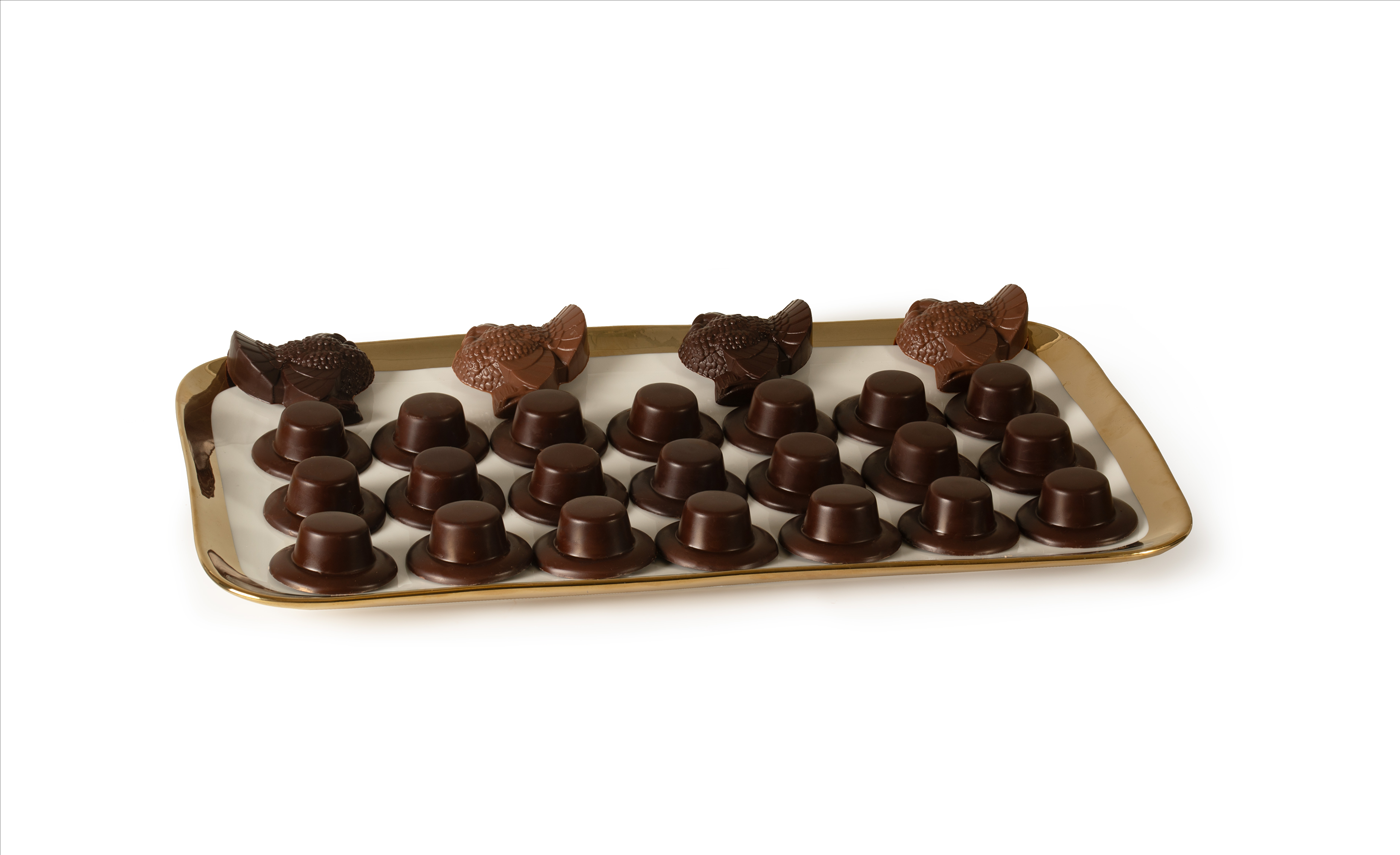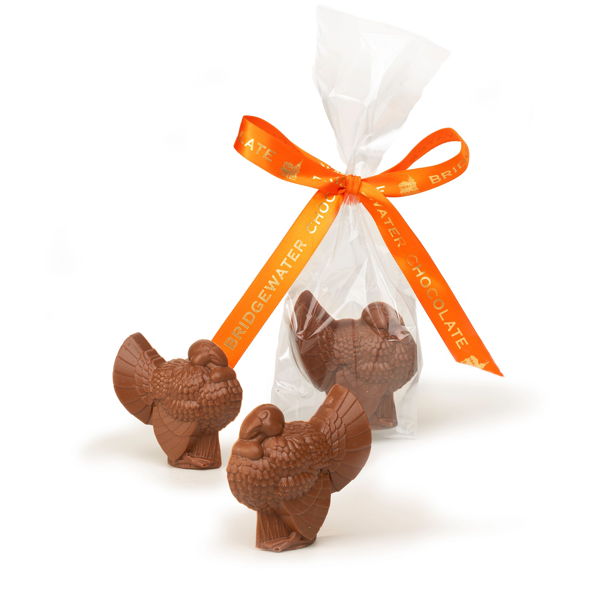 Make your own Thanksgiving Platter with our caramel Pilgrim Hats and small Turkeys. Included is a 20pc clear tray of dark chocolate Caramel Pilgrim Hats and 3 x 2pc small milk chocolate Turkeys and 3 x 2pc small dark chocolate Turkeys. As an alternative, the Turkeys can be used as place setting